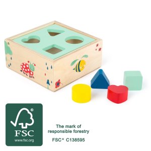 Rozmer: 13x13x6, 5 cm Rozmer kocky: 3 cm, Ø 3,5 cm Vek: 12m + Materiál: 100% FSC drevo