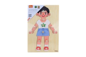 Drevené detské puzzle (skladačka) v rámčeku v pútavých farbách pre najmenšie deti - s deviatimi dielikmi.
