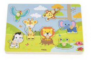 Drevená vkladačka s plastovými úchytkami od najznámejšieho výrobcu puzzle Ravensburger.