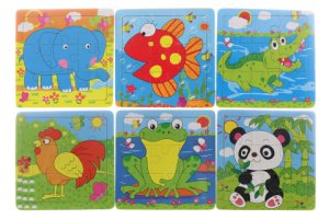 Drevené puzzle na podložke. Rozmer cca 15 x 15 cm.