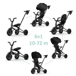 Multifunkčný výrobok Chipolino Trojkolka so strieškou Matrix Ebony s 2 rôznymi spôsobmi použitia - rodič tlačí dieťa alebo dieťa samo riadi hračku pomocou pedálov.