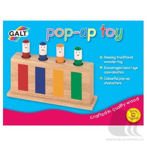 Zábavná drevená detská hračka obsahuje 4 štipce (figúrky), ktoré vďaka pružinke po zatlačení vyskočí.
