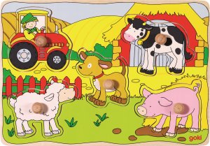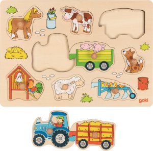 Farebná detská vkladačka s deviatimi dielikmi s motívom farmy.