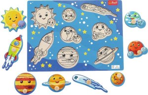 Vkladačka pre najmenších s obrázkami slnka, planét a vesmírnych telies.