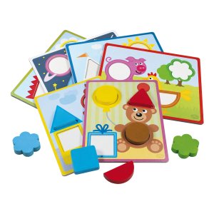Drevená vkladačka so zvieratkami na pevnej podkladovej doske. oba dieliky z každej sady sa skladajú a tvoria krásne zvieratá a vzory dieliky možno ľahko uchopiť a tiež sa s nimi hrať aj samostatne rozvíja jemnú motoriku, …