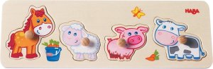 Drevená vkladačka s úchytkami od výrobcu HABA. štyri vkladacie obrázky - koník, ovečka, kravička a prasiatko úchytky sú (rovnako ako celý výrobok) z prírodného materiálu rozvíja predstavivosť, jemnú …