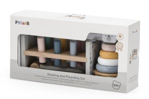 Xylofón, vkladačka a zatĺkačka sú prepojené hračky, ktoré ponúkajú deťom možnosť objavovať rytmus a zvuky a súčasne rozvíjať motorické zručnosti.