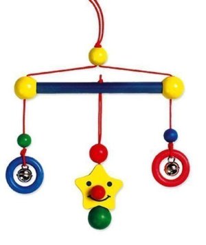 Dĺžka: cca 48x4 cm, priemer krúžku so zvončekom: 7 cm Vek: 0+ Materiál: drevo, kov 100% Vyrobené v Nemecku