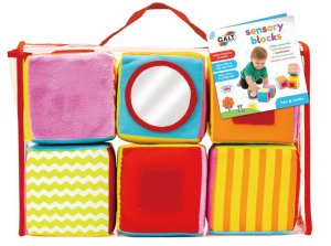 Všetky látkové kocky obsahujú rôzne hracie komponenty: hrkálky, hryzátka, pískadlá, zrkadlo vyrobené z bezpečnostnej fólie v ktorom môže dieťa pozorovať svoju tvár a časti vydávajúce zvuky krčeného …