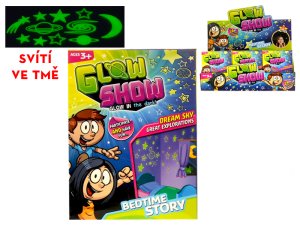 Sada fluorescenčných hviezdičiek, astronauta, vesmírnej lode a ďalších motívov, ktoré po nasvietení v tme svietia.