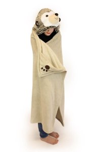 Zábavná, mäkučká, hrejivá deka s kapucňou s motívom zvieratka a dvoma rohovými vreckami na ruky s motívom zvieracích labiek.