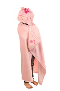 Zábavná, mäkučká, hrejivá deka s kapucňou s motívom zvieratka a dvoma rohovými vreckami na ruky s motívom zvieracích labiek.