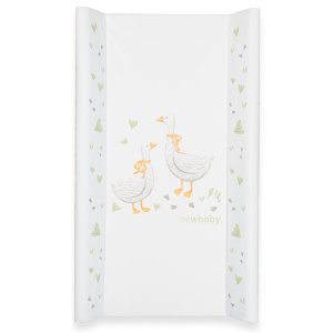 Praktická tvarovaná prebaľovacia podložka New Baby Husičky z nepremokavého, plastového materiálu v príjemných pastelových farbách.