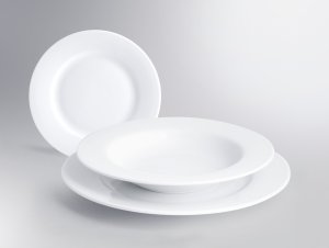 Táto 18-dielna porcelánová sada skladajúca sa z troch veľkostí tanierov zaujme svojim minimalistickým a elegantným prevedením.