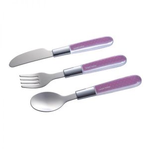 Špeciálne tvarovaný detský príbor (nôž, vidlička, lyžička) z kvalitnej nehrdzavejúcej ocele je určený deťom, ktoré sa učia samy jesť.