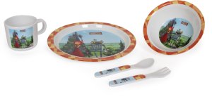Päťdielna jedálenská sada, ktorá deťom spríjemní každé jedlo vďaka farebnej potlači.