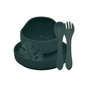 Štvordielny jedálenský set od Nattou z mäkkého silikónu je veľmi praktický, ľahko uchopiteľný a protišmykový.
