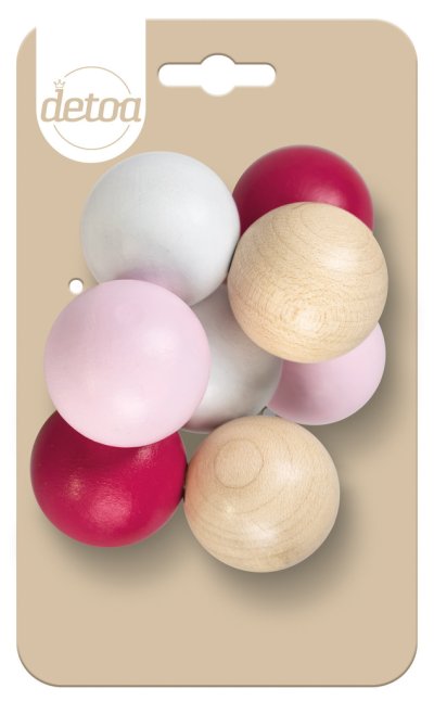 Osem rôznofarebných pohyblivých guličiek spojených na šnúrke. Pomáhajú rozvíjať jemnú motoriku rúk a sú vhodné pre deti od 6 mesiacov. Výrobok spĺňa požiadavky EÚ na bezpečnosť hračiek. Priemer jednotlivej guličky je 3 cm. Hračka je pripevnená na ekologickej papierovej karte. Hlavné vlastnosti: precvičuje jemnú motorikuvýrobok je zdravotne nezávadnýspĺňa všetky normy EÚ pre bezpečnosť hračiekpriemer jednej guličky je 3 cmpripevnené na papierovej kartevyrobené v Českej republike