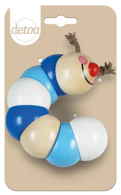 Hračka z farebných drevených tvarov navlečených na gume, ktoré sa pohybujú, točia a ohýbajú. Dĺžka húsenice je 13 cm a je pripevnená na papierovej karte. Vhodná na precvičovanie jemnej motoriky rúk Vašich detí už od 6tich mesiacov. Hlavné vlastnosti: precvičuje jemnú motorikuvýrobok je zdravotne nezávadnýspĺňa všetky normy EÚ pre bezpečnosť hračiekvyrobené v Českej republike