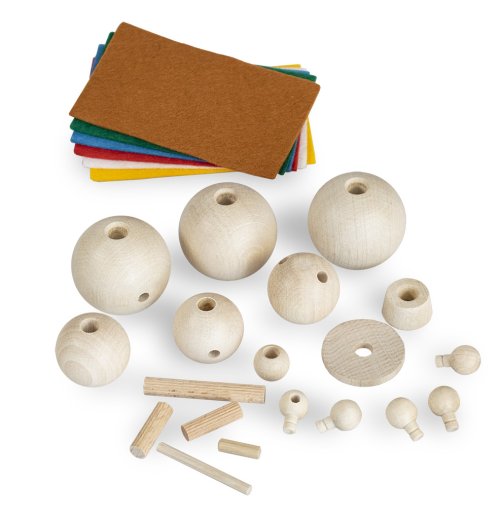 Sada obsahuje 19 drevených dielikov, 6 farieb plstí + návod.