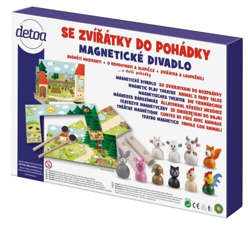 Magnetické divadlo so zvieratkami je výborná zábava pre malých aj veľkých na motívy obľúbenej rozprávky. Vo figúrkach je vlepený magnet ktorý sa priťahuje k magnetu vo vodítku. Hra rozvíja detskú fantáziu a kreativitu pri vymýšľaní vlastných rozprávkových príbehov. Výrobok spĺňa požiadavky EÚ na bezpečnosť hračiek a je vhodný pre deti od 3 rokov. Balené v papierovej krabici s rozmermi 33,5x23x3,5 mm. Hlavné vlastnosti: hra rozvíja detskú fantáziu a kreativituvýrobok spĺňa požiadavky EÚ na bezpečnosť hračiekvhodný pre deti od 3 rokov