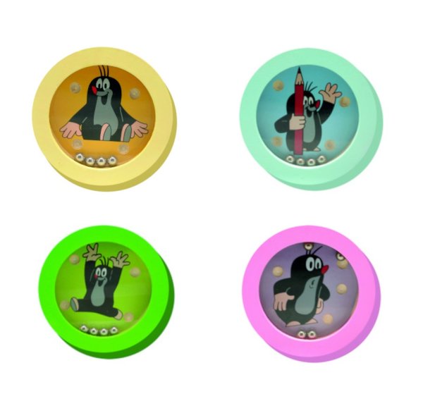 Cena je uvedená za 1 ks. Rozšírte svoje zručnosti a koncentráciu! Hráči balansujú so štyrmi guličkami okolo veselého Krtka do určených jamiek. Je potrebné udržať guličky v jamkách, do obsadenia všetkých voľných jamiek. Rozvíja koordináciu rúk a očí, logické myslenie a sústredenie. Hlavné vlastnosti: 4 rôzne motívy rozvíja koordináciu rúk a očí, logické myslenie a sústredenie © Zdeněk Miler