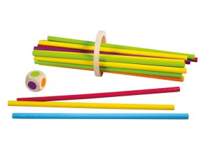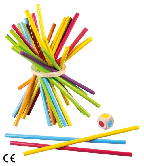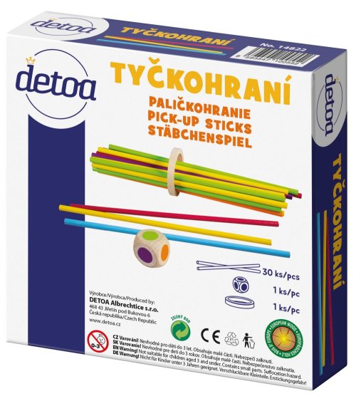 Máte radi hru mikádo, ale už by ste si ju chceli zahrať trochu inak? Potom je Tyčkohranie určené presne pre Vás! Hra pre dvoch a viacerých hráčov podporuje jemnú motoriku, logiku a trpezlivosť. Je vhodná aj na precvičenie farieb. A aký že je princíp tejto hry? Hoďte kockou a vytiahnite tyčku rovnakej farby tak, aby sa drevené koliesko nedotklo stola. Pokiaľ sa tak stane, hráč prehráva. Tyčkohranie obsahuje 30 ks farebných tyčiniek, 1 hraciu kocku a 1 drevený krúžok . Hlavné vlastnosti: vyrobené v SR spĺňa všetky aktuálne európske bezpečnostné normy obsahuje 30 tyčiek, 1 kocku a 1 krúžok pre dvoch a viacerých hráčov.