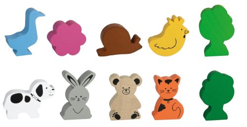Mačka, medvedík, zajačik, kuriatko, psík, hus, šneček, kytička a 2 stromy. Zoznámte sa s roztomilou sadou drevených zvieratiek, ktorá prináša zábavu a rozvíja fantáziu. Každé zvieratko je starostlivo vyrobené z kvalitného materiálu a ponúka roztomilé detaily, ktoré podporujú kreatívnu hru. Deti si môžu vytvárať vlastné príbehy, naučia sa rozpoznávať a pomenovať zvieratká a farby a precvičia si aj jemnú motoriku a koordináciu ruka-oko. Súprava je ideálna pre spoločné hranie a rozvíja predstavivosť. Zvieratká sú odolné, bezpečné a skvele doplnia každú detskú izbu či herňu. Hlavné vlastnosti: 10 rôzne tvarovaných drevených dielikovprecvičuje jemnú motorikurozvíja fantáziuzdravotne nezávadnévyrobené v Českej republikevhodné pre deti od 3 rokov