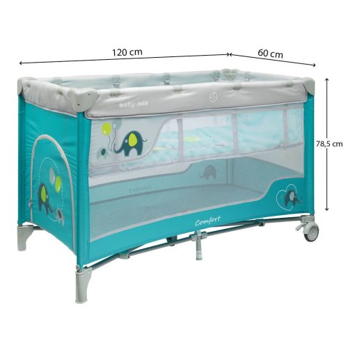 Praktická prenosná cestovná postieľka Baby Mix slúži nielen ako cestovná postieľka, ale aj ako ohrádka. Užite si čas strávený s Vaším dieťatkom kedykoľvek budete na dovolenke alebo na cestách. Aj starí rodičia si môžu užiť prítomnosť svojich vnúčiatok, aj keď už nemajú detskú postieľku. Vďaka jednoduchému skladaciemu mechanizmu postieľku rýchlo a ľahko zložíte, vložíte do priloženej praktickej tašky s popruhmi a pohodlne dáte do auta. Postieľka je veľmi ľahká, je opatrená kolieskami s integrovanou brzdou, takže ju môžete ľahko previezť do inej miestnosti, na balkón, terasu či záhradu.