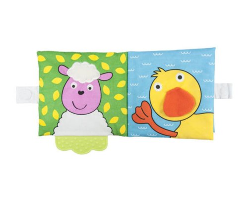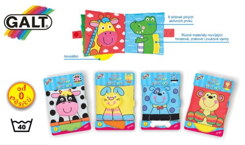 Na prednej strane nájdete pískaciu hlavu kravičky pre ešte väčšiu zábavu vášho dieťaťa. Každá stránka je vyplnená špeciálnou šuštiacou hmotou a navyše na nej nájdete aktívny prvok, ktorý vydáva hrkajúce zvuky. Knižka je ideálna na podporenie hmatových, zrakových i zvukových vnemov dieťaťa. Hračka je mäkká, bezpečná a je možné ju prať v práčke. Knižka obsahuje aj hryzátko na uľahčenie prerezania zubov. Vhodné pre deti už od 0 mesiacov.
