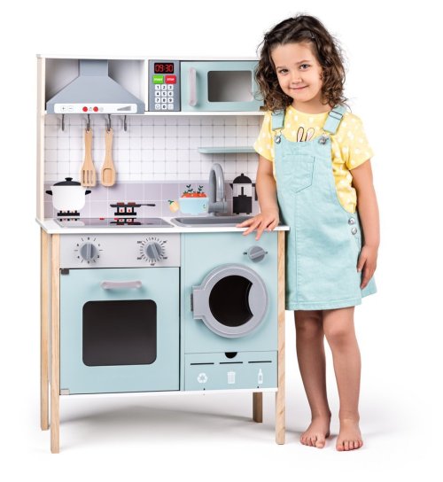 Máte doma malého kuchára alebo kuchárku? Urobte im radosť ich vlastnou detskou kuchynkou Dakota od značky Woody . Zabavia sa počas varenia svojich imaginárnych jedál a rozvinú svoju detskú fantáziu. Kuchynská linka navyše vydáva rôzne zvuky a dokonca je vybavená svetelnými efektmi.