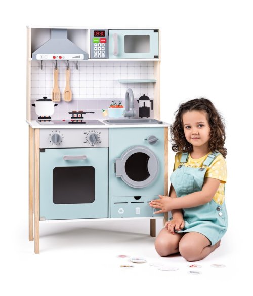 Naučte svoje ratolesti správne triediť odpad. Ku kuchynke dostanú kartičky s obrázkami použitých obalov , zvyškov jedál, sklenených fliaš a ďalšieho podobného odpadu. Tie potom vkladajú do troch otvorov so znakmi v spodnej časti kuchynky.