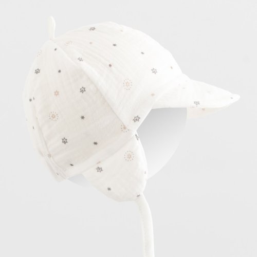 Letná mušelínová čiapočka so šiltom českej značky New Baby Arthur. Čiapočka ochráni hlavičku pred prudkým slnkom a vďaka šiltu, ktorý urobí tieň nespáli tváričku a chráni oči dieťaťa pred slnkom. Je krásne tvarovaná na ušká, zaväzuje sa na šnúrky, netlačí a bude dobre držať na hlavičke bábätka. Mušelín je jedna z najčistejších, najjednoduchších a najjemnejších tkanín na svete. Jemne tkaný priedušný materiál je taký dokonalý, že si ho zamilujú deti po celom svete. Ľahká štruktúra umožňuje mušelínu „dýchať“ a zaisťuje dostatočnú cirkuláciu vzduchu, čím znižuje riziko prehriatia. Táto vlastnosť pomáha udržať Vaše dieťa v pohodlí, bezpečí a rodičia v pokoji. Mušelín je veľmi odolný a to tak, že bez problémov zvláda opakované pranie a postupom času je ľahší a jemnejší. Zloženie: 100% bavlna. OEKO-TEX ŠTANDARD 100.
