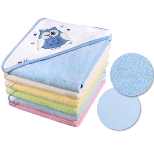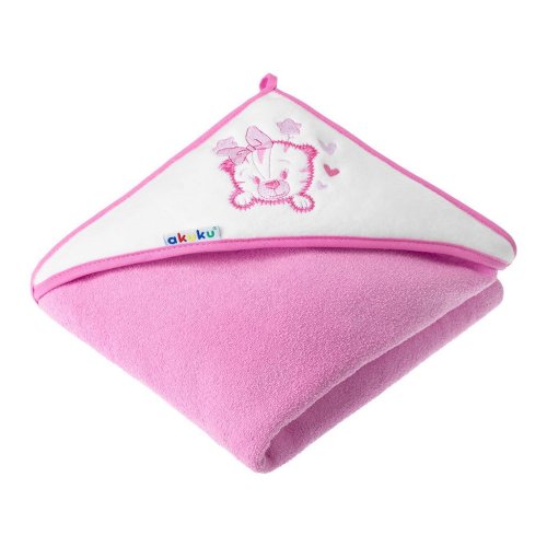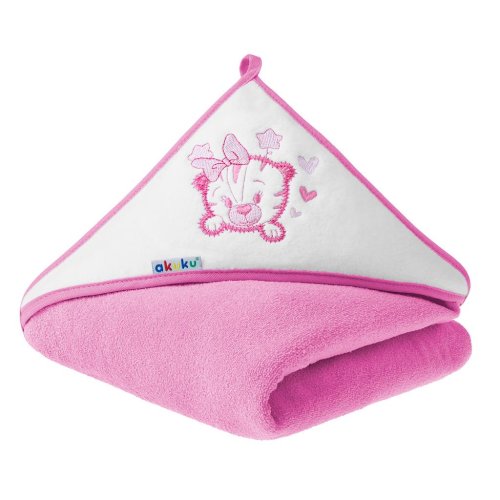 Detská osuška Akuku s obrázkom a kapucňou. Osuška je vyrobená z príjemného a mäkkého materiálu. Vnútorná strana osušky je bavlnená, vonkajšia fleecová. Rozmery: cca 100x100 cm. Zloženie: 100% bavlna.