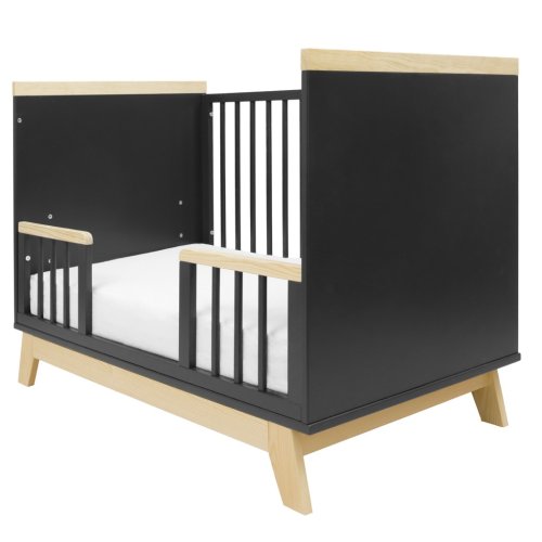 Postieľka má tri úrovne nastavenia výšky matraca a tri výsuvné tyče. Až malý majiteľ postieľky vyrastie z dojčenského veku, odporúčame odstrániť jednu stranu s priečkami. Vysokú bočnicu nahraďte zábranou k bokom postieľky. Zábrana v rovnakom farebnom prevedení dodá postieľke prestížny vzhľad a dieťaťu poskytne pocit nezávislosti.