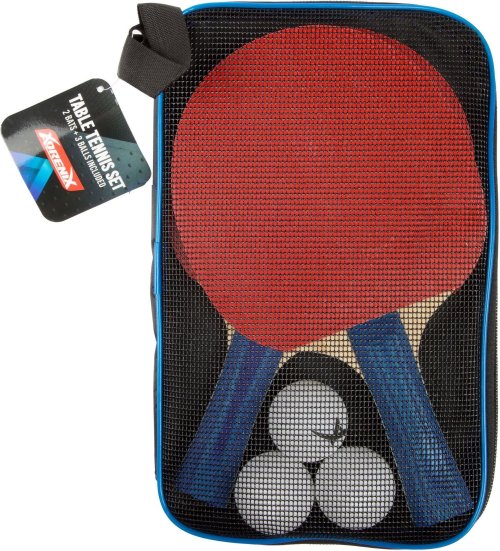 Stolný tenis je obľúbenou zábavou a to nielen na doma, ale aj na dovolenku. Rakety a loptička si môžete kamkoľvek so sebou vďaka praktickej taštičke na zips. Sada obsahuje 2 rakety, 3 loptičky. Rozmer pálky: 26 cm Rozmer puzdra: 17 x 27 cm