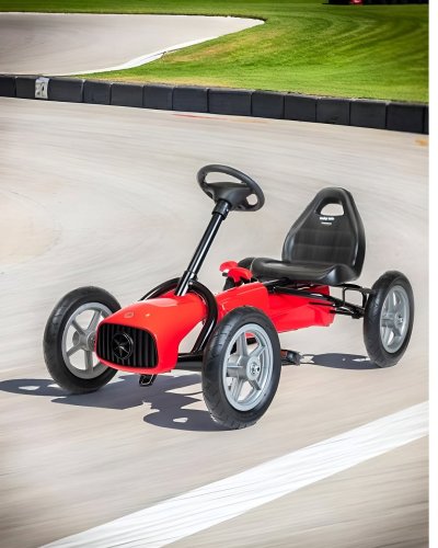 Veľké nafukovacie pneumatiky zaistia komfort a pohodlie pri jazde na akomkoľvek povrchu. Motokára má zabudovaný reťazový pohon s možnosťou odpojenia pohonu - funkcia voľnobežky a ručnú brzdu na zadnej náprave.