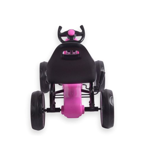 Vozidlo je vyrobené z ľahkej kovovej konštrukcie a vysoko kvalitných plastov pre dlhú životnosť a odolnosť proti poškodeniu. Má zabudovaný reťazový pohon s pedálmi a veľké, odolné kolesá s penovými pneumatikami (EVA) pre dobrú priľnavosť a pohodlie na rôznych povrchoch. Ergonomické športové riadidlá umožňujú pevný úchop a ľahké riadenie, zatiaľ čo tvarované sedadlo poskytuje pohodlnú jazdu. Je tiež vybavené ručnou núdzovou brzdou.