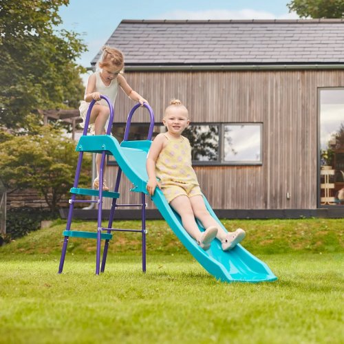 Nechajte deti liezť po rebríku a jazdiť dole s touto voľne stojacou šmykľavkou. Vyrobené z ocele s práškovým nástrekom pre dlhotrvajúcu ochranu proti korózii. Vybavené pohodlným rebríkom pre ľahký prístup a rukoväťami na vrchu pre maximálnu bezpečnosť. Výška od zeme k plastovej časti šmykľavky je 90 cm. Vylepšená robustná konštrukcia so základňou so 4 nohami pre maximálnu bezpečnosť. Šmykľavka (šmyková dráha) sa skladá z dvoch dielov. Obsahuje zemné kotvy pre väčšiu stabilitu. Dodávané v plochom balení a predvŕtané s jednoduchým montážnym návodom. Max. nosnosť: 50kg. Rozmery šmykľavky: 120 x 81 x 186 cm. Rozmery balenia: 25,5 x 120 x 41,5 cm/12,5 kg. Vek: 3+