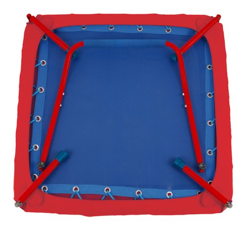 Veľkosti: 86 cm x 86 cm štvorcový rám trampolíny, 82 cm výška k držadlu. Celková váha trampolíny: 7,5 kg. Maximálna záťaž 25 kg!