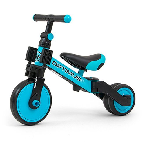Univerzálna detská šliapacia trojkolka Milly Mally 3v1 Optimus bola navrhnutá tak, aby sa stala tým najlepším čo môžete ponúknuť svojmu malému pretekárovi. Vďaka stabilnej konštrukcii poskytuje dieťaťu maximálnu úroveň bezpečnosti a týmto mu uľahčuje získavanie nových zručností. Najväčšou výhodou tejto trojkolky je jej variabilita. Akonáhle dieťa získa základy jazdy, pripojíme pedále alebo ju behom okamihu zmeníme na klasické jednostopové odrážadlo. Penové kolesá výborne absorbujú rázy, poskytujú dobrú priľnavosť, zaistia pohodlie počas jazdy a neunavia vášho malého pretekára. Dostatočný rázvor kolies poskytuje mimoriadnu stabilitu, bezpečnosť počas používania doma aj vonku. Doraz nedovolí pretočenie riadidiel.