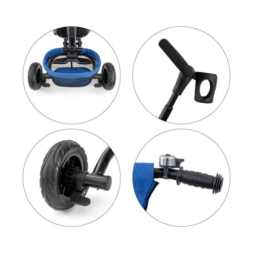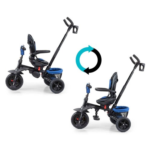 Je vyrobená z kvalitných a odolných materiálov. Má moderný konštrukciu, pohodlné a ergonomicky tvarované sedadlo, ktoré je otočné o 360 stupňov, čo umožní dieťaťu cestovať v smere alebo proti smeru jazdy. O pohodlie a bezpečie počas jazdy sa stará bariérky, trojbodové bezpečnostné pásy, pohodlné stúpačky alebo gumové kolesá, ktoré skvele absorbujú rázy a poskytujú dobrú priľnavosť. Trojkolku môže ovládať ako dieťa, tak aj rodič pomocou nastaviteľné rukoväte pre tlačenie. Po odobratí vodiace tyče, sklápacie striešky, ktorá chráni pred slnkom alebo ostatných komponentov bude slúžiť ako trojkolka. Trojkolku je možné používať aj ako alternatívu golfového kočíka. Pre uloženie hračiek alebo potrieb pre dieťa je tu praktický úložný košík.