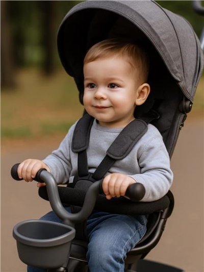Detská šliapacia trojkolka Baby Mix 5v1 RELAX je multifunkčný dopravný prostriedok a je typickým príkladom produktov GROW UP - rastie zároveň s dieťaťom. Trojkolku môže ovládať ako dieťa, tak aj rodič pomocou nastaviteľnej vodiacej tyče. Po odobratí vodiacej tyče, sklápacie striešky, ktorá chráni pred slnkom alebo ostatných komponentov bude slúžiť ako trojkolka. Má modernú konštrukciu, pohodlné a ergonomicky tvarované sedadlo, ktoré je posuvné a otočné o 360 stupňov, čo umožní dieťaťu cestovať v smere alebo proti smeru jazdy. Je vyrobená z kvalitných a odolných materiálov a skladacia konštrukcia umožňuje bezproblémovú prepravu trojkolky napríklad v kufri auta. Jej skladanie je veľmi jednoduché, intuitívne a nevyžaduje žiadne náradie. O pohodlie a bezpečie počas jazdy sa stará odnímateľná hrazda, päťbodové bezpečnostné pásy, pohodlné stúpačky alebo kolesá vyrobené z tvrdenej peny EVA, ktoré skvele absorbujú nerovnosti, poskytujú perfektnú priľnavosť a nevyžadujú hustenie. Na uloženie hračiek alebo potrieb pre dieťa je tu praktický úložný košík.