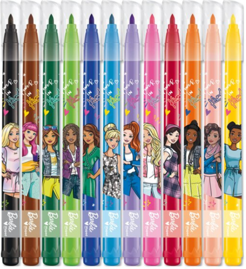 Súprava 12 farebných fixiek Maped s atraktívnym dizajnom obľúbenej bábiky Barbie.
