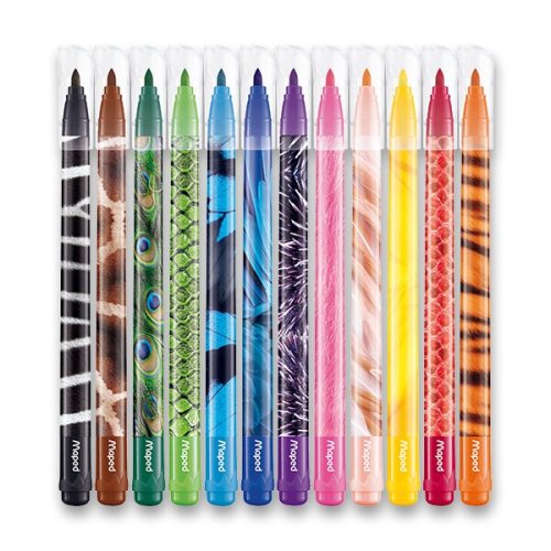 PREDNOSTI farebných fixiek Maped ColorPeps, * BEZPEČNOSŤ - priedušný uzáver, * ODOLNOSŤ - hrot odolný proti zatlačeniu, poškodeniu či vysychaniu, * VYPRATEĽNÉ - atrament vyprateľný z väčšiny textílií pri praní v práčke na 40°C, [fix 2,8