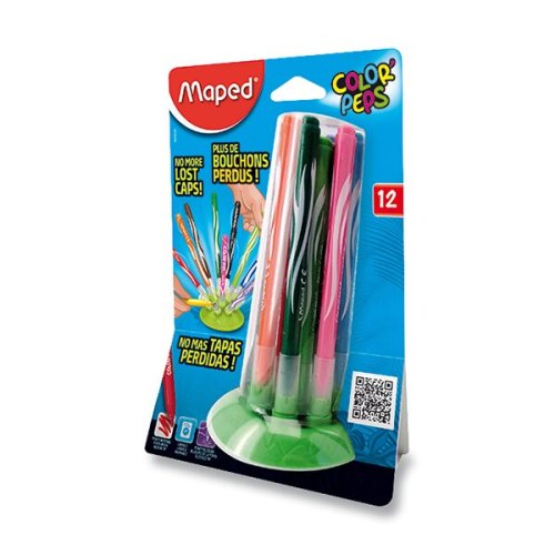 PREDNOSTI farebných fixiek Maped ColorPeps, * BEZPEČNOSŤ - priedušný uzáver, * STREDNÝ HROT - zrezaný hrot pre tenkú a širokú linku, * ODOLNOSŤ - hrot odolný proti zatlačeniu či poškodeniu, * ERGONOMICKÝ ÚCHOP - trojhranný tvar v ú - atrament vyprateľný z väčšiny textílií pri praní v práčke na 40°C, * ZÁBAVENÉ OZNAČENIE FARBY, [fix 2,8 mm], [prateľné] [odolný proti zatlačeniu]