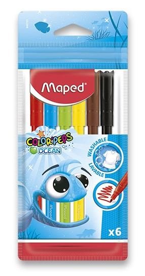 PREDNOSTI farebných fixiek Maped ColorPeps, * BEZPEČNOSŤ - priedušný uzáver, * ODOLNOSŤ - hrot odolný proti zatlačeniu či poškodeniu, * VYPRATEĽNÉ - atrament vyprateľný z väčšiny textílií pri praní v práčke na 40°C, [zvýrazňovač [2]