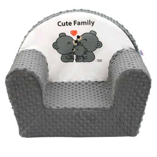 Detské kresielko z Minky New Baby Cute Family českej značky je skvelým a veľmi obľúbeným doplnkom do detskej izbičky. Toto kreslo pre najmenšie deti je vyrobené z mäkkej minky látky a má snímateľný poťah, ktorý je možné prať. Minky je hebká látka s výstupkami na stimuláciu senzomotoriky detí. Poťah má veľmi príjemné farby a zdobí ho obrázok roztomilé medvedie rodinky, čím dieťa zaujme. Rozmery: vxš: cca 42x53 cm, výška operadla cca 29 cm, šírka sedadla cca 25 cm. Zloženie: poťah 100% polyester, vnútorný materiál: polyuretánová pena.