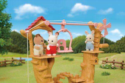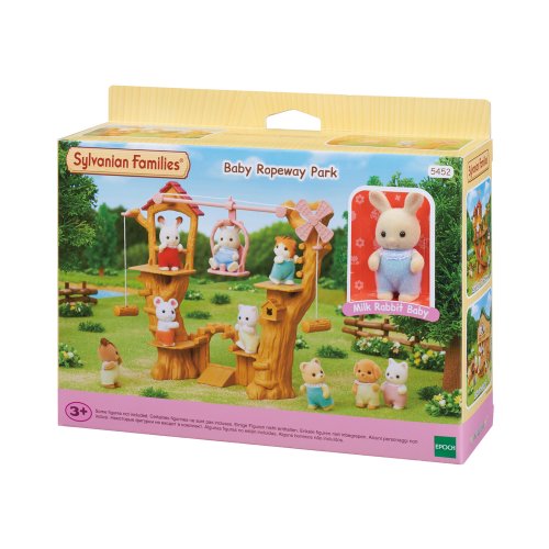 Detský lanový park s pohyblivou gondolou pre jednu detskú figúrku. Zatiahnutím za lano vľavo alebo vpravo pohybujete gondolou. Pod stromami je dobrodružné ihrisko. Sada obsahuje jednu figúrku Baby Milk zajačika. Užite si viac zábavy s ďalšími figúrkami a doplnkami Sylvanian Families (predáva sa samostatne). Herné sady a figúrky Sylvanian Families sú nadčasové a vysoko kvalitné hračky. Hra podnecuje predstavivosť dieťaťa. Obsahuje: 1x figúrka Baby Milk králiček, 1x ľavá časť lanovky, 1x prostredná časť lanovky, 1x pravá časť lanovky, 1x gondola, 1x lano. Vek: 3+