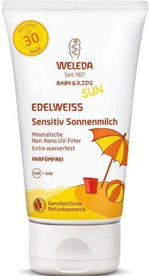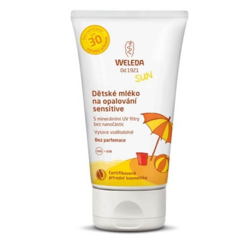 Vysoko vodeodolné telové mlieko na opaľovanie SPF 30 pre deti.